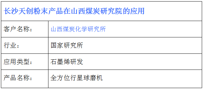 山西煤炭化學(xué)研究所在長沙天創(chuàng)粉末采購全方位行星式球磨機(jī),用于石墨烯材料研發(fā)。