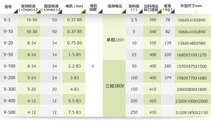 1、對于粒徑和密度接近的物料的混合效率較高。