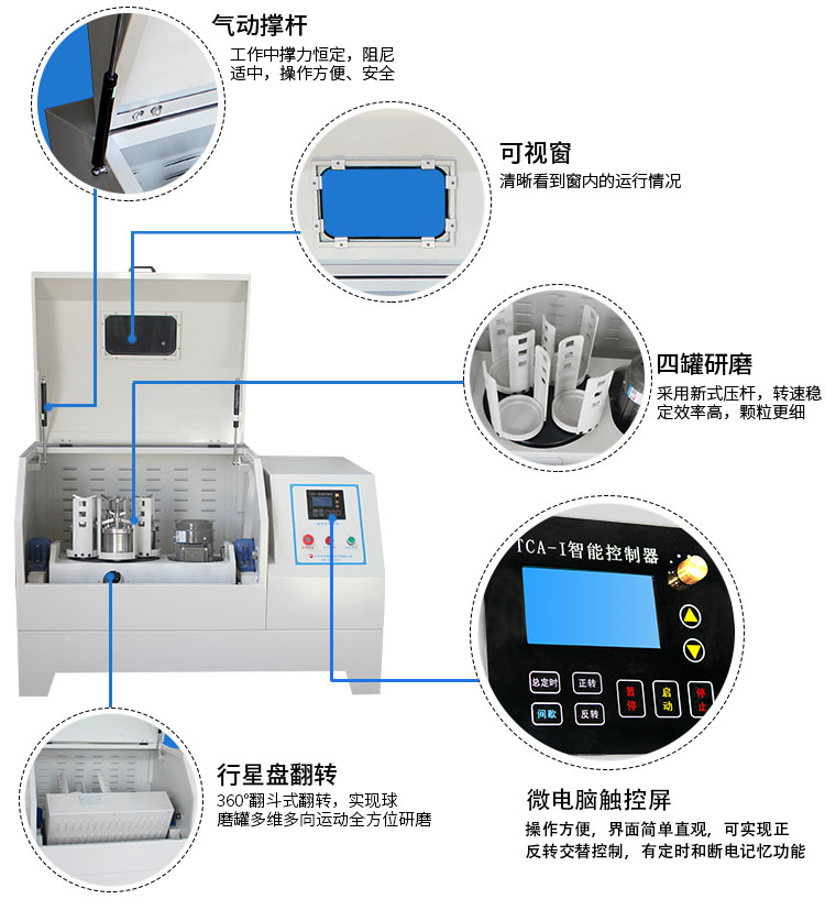 微電腦行星球磨機廣泛應用于地質、礦產、冶金、電子、建材、陶瓷、化工、輕工、醫藥、環保等部門,適用于電子陶瓷、結構陶瓷、磁性材料、鈷酸鋰、錳酸鋰、催化劑、熒光粉、長余輝發光粉、稀土拋光粉、電子玻璃粉、燃料電池、氧化鋅壓敏電阻、壓電陶瓷、納米材料、圓片陶瓷電容、MLCC、熱敏電阻(PTC、NTC)、ZnO壓敏電阻、介質陶瓷、氧化鋁陶瓷、氧化鋯陶瓷、熒光粉、氧化鋅粉料、氧化鈷粉料、Ni-Zn鐵氧體、Mn-Zn鐵氧體等產品的生產領域。