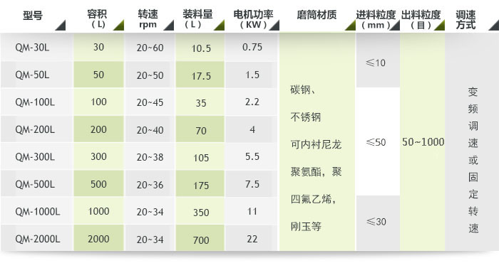 五、輕型滾筒式球磨機(jī)參數(shù)